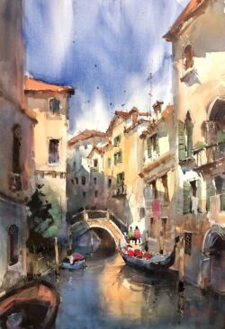 Sanghamitra Roy Majumder, una artista autodidacta de la India. Comenzó su carrera como artista profesional hace unos años. Desde que era una niña dibujando en las paredes de su casa, la pintura se ha instalado en su alma. Se dedicó por completo a la práctica de la pintura, especialmente con acuarela. Su transparencia y espontaneidad siempre le sorprenden.