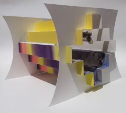 La ventana, elemento arquitectónico y nexo visual con el mundo exterior. Distancias y perspectivas interiorizadas. Desde los planos arquitectónicos de distribución doméstica de una casa, se deriva a una especie de metamorfosis del recuerdo de estos lugares contenedores de acciones y recuerdos familiares. Esta acción se ve reflejada en la parte compositiva de mi propuesta. Elementos tridimensionales residuales de nuestras vivencias y la humanización del espacio.