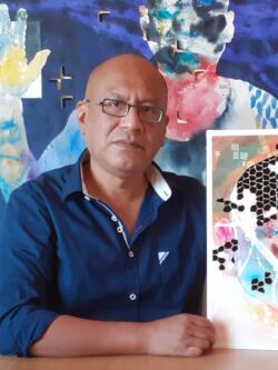Miguel Collantes Depaz (Peru 1966) is one of the best current plastic artists; a clear example is his work «La pescadilla que se muerde la cola» («The whale that bites its own tail»). It is an ode to nostalgia, to the doors that open when others close, to the lights and shadows, to the swaying of memories that come and go like curtains when the wind blows. Miguel proposes a reunion with what we think we have lost, but which sleeps in the depths of our soul. And he opens a small window to the world, to life, because Miguel does not dream under the tree, but he enters the forest through that window of feelings. In this work, Miguel undresses himself and opens his deepest life to us, sharing with us his inner music.