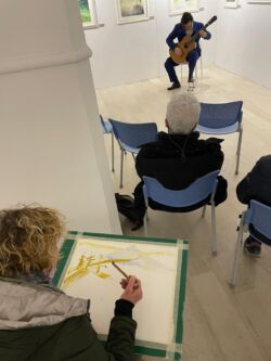 De hecho, recientemente se ha unido a un grupo internacional de amigos de la creatividad para pasar unos días de inmersión sensorial completa en la naturaleza que han inspirado una pintura experimental espontánea utilizando tintas con acuarela y pintura sobre lienzo. También le fascinan las conexiones entre la poesía y la acuarela y la acuarela con la música.