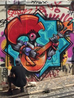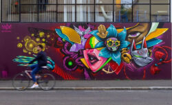 He has left his personal stamp and his colourful, abstract, dreamlike and surrealist mark on several cities in Spain and Europe. He is currently based in Bordeaux (France), working mainly on murals, tattooing, drawing and painting.